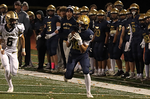 Leo Etter hauling in a first half TD pass for NV/Old Tappan, which opened defense of its state win a 37-0 win over River Dell in the opening round of the North 1, Group 3 state sectional tournament on Friday night.